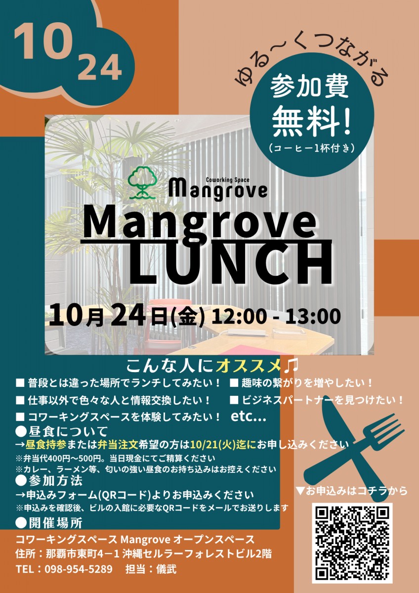 《お知らせ》10月24日(金) Mangroveイベント/ゆる〜くつながるランチ会のご案内