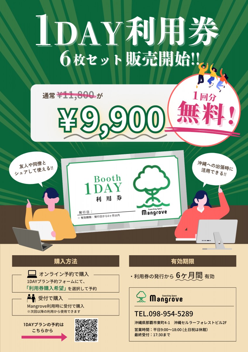 この度、より便利に・お得にMangroveをご利用いただける「1DAY利用券」の販売を開始いたします。