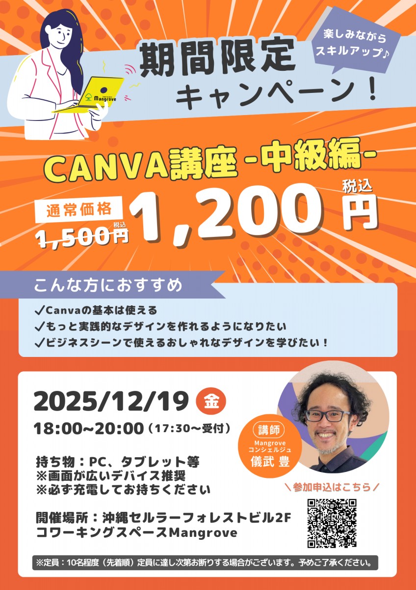 《お知らせ》12月19日(金) Mangroveイベント/Canva講座(中級編)のご案内