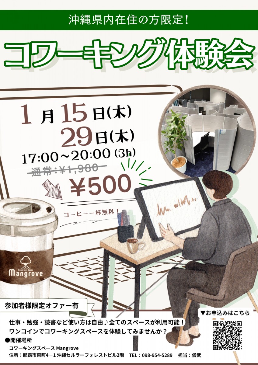 【1月15日(木)、29日(木)コワーキング体験会 in Mangroveのお知らせ】