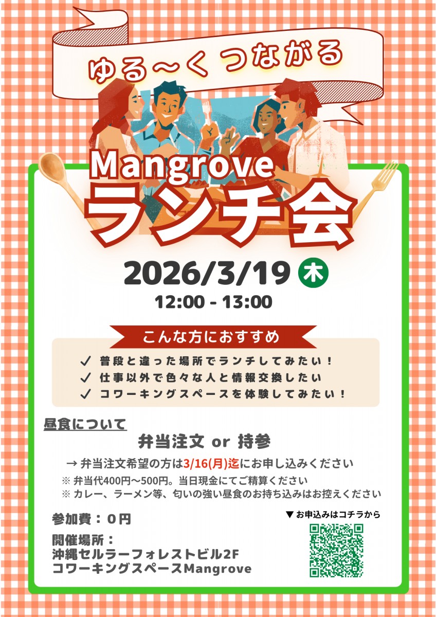 《お知らせ》3月19日(木) Mangroveイベント/ゆる〜くつながるランチ会のご案内